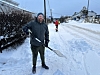 Larsen var selv utendørs for å brøyte egen oppkjørsel i håp om at brøytebilen skulle komme.