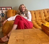 RETRO: Anna Almqvist driver retroALM i Sentrumsbygget. Her sitter hun i en typisk «retroALM-sofa».