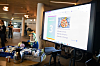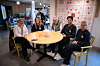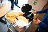I dag står vaffelsteking og quiz på storskjerm på programmet. Kjeks, saft og kaffe er satt frem på bordene, og stemningen er god. Det blir et møte mellom generasjoner når ungdommene og beboerne på omsorgsboligen samles. En av beboerne Oavis prater med er svært fornøyd med tiltaket: