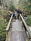 Det er kanskje ikke så ofte man treffer på ivrige ungdommer som bygger trapper og broer ute i marka, midt i skoletiden på en våt høstdag.
