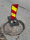 I den bratte veien som går fra Tårnåsen og ned til Skiveien, er det nemlig satt ut en rekke kjegler og markeringer, for å forhindre at bilister havner i uføre.