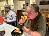 – Her må jeg si det er en passe mengde fyll. Pepperonien var skikkelig god her. Ikke spicy, men god. Og tomatsausen var klart bedre enn for mange andre, følger Marianne opp med.