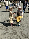 VENNER: Store og små koste seg med hverandre på Tårnåsen skole lørdag.Foto: Thomas Tra