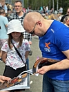 PULS SAMFUNN: Pekka Lundefaret var representert og delte ut Ung300 magasiner og Johnny Virker bøker. Såklart med signatur.