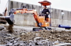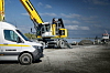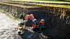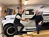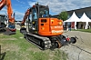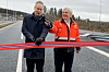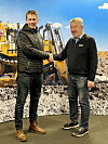 TEST AV FØRERHUS: Håkon Snortheim, fylkesråd for samferdsel og Bjørn Wear fra Grimsrud AS, med en av elevene som fikk testet førerhuset i hjulgraveren.