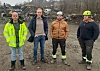 TEST AV FØRERHUS: Håkon Snortheim, fylkesråd for samferdsel og Bjørn Wear fra Grimsrud AS, med en av elevene som fikk testet førerhuset i hjulgraveren.Jan Ivar Bøe, Akershus fylkeskommune