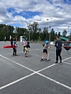 Med ny energi var det klart for dagens andre økt – denne gangen på rulleski. Barna fikk prøve seg på teknikk og balanse, og det hele ble avsluttet med en uhøytidelig konkurranse mellom barna og foreldrene. Til slutt var det foreldrene som stakk av med en knepen seier – barna kommer sterkere tilbake neste gang!