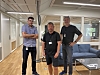 Schi forteller at nyoppstartede bedrifter får tildelt kontorplasser i delen av bygget som kalles "Innovasjon og start-up". Her hilste Oppegård Avis på Odd Gunnar Haug (KANAN AS), Carsten Lehbrink (Qbee AS) og Morten Bergh (Bulk Tainer Logistics Norway).