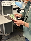 På biblioteket møter vi også Bodil Kristoffersen som har tatt turen for å hente en ny bok hun har ventet på. Kristoffersen ville gjerne snakke med avisen, men mente håret ikke var bra nok til bilde. Selvom Oppegård Avis sin journalist syntes håret var upåklagelig måtte lokalmediet nøye seg med et bilde av boken.