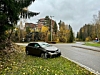 HER SA DET STOPP: Søndag formiddag stod denne bilen her, tydelig skadet etter et sammenstøt av noe slag.