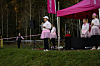 KLARE FOR LØP: Pernille, Mona og Lena stiller med pomponger og rosa energi.