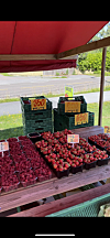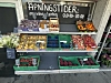 i bodene er det bringebær, blåbær og jordbær, men det er ikke bare bær som tilbys fra de to bodene. Det selges også nypoteter, moreller, squash og blomkål. Alt er fra Norge og i tilsynelatende fersk tilstand. I tillegg er det mulighet for å kjøpe kasser med bær for de som skulle ønske store mengder, til for eksempel sylting.