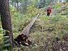 Oppegård Avis fikk tips om hendelsen fra en forbipasserende og var raskt på stedet. Da var brannvesenet allerede i gang med å kutte opp det store treet i mindre biter og få det tilbake i grøfta.