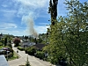 Til tross for massivt slukkearbeid kunne man fortsatt se røyk fra den nedbrente garasjen nesten en time etter brannvesenet meldte at de hadde kontroll på brannen.