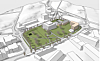 Parkalternativet foreslår en større offentlig park, noe som fremmer samfunnsengasjement og livskvalitet, men gir lavere salgsinntekter. Slik ser forslaget om park ut: