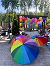 I tillegg til det fantastiske toget, som du kan se flere bilder av under her, samt video av på Facebook, så skjer det mye flott også på sykehjemmet. Benkene utenfor er malt i regnbuens farger, og et gigantisk regnbueflagg henger på flaggstangen.