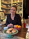 Uten tynger et nokså traurig desembervær, men det er raskt glemt når vi trer inn i den gamle kolonialen på Svartskog. Der serveres det umiddelbart en varm følelse av jul og hygge. Dørbjella klirrer, Maria Mena synger at hun vil hjem til jul, det lukter kaffe og nybakte makroner, og nesten ingenting er forandret i det koselige lokalet, selv om det nå er snart et år siden ekteparet Steensen Skovholdt stengte dørene.