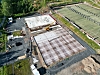 Om en skal forstå hvordan tennishallen skal fungere, kan en skille bilde ovenfor i tre deler. De to store grå betongfirkantene er der fire tennisbaner skal ligge, altså to i hver firkant.