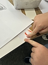 – Det enkleste er å vise det, men det er et type kritt hvor man bruker fingrene til finjustere fargen for å gjøre det svakere, forteller de og viser oss.