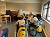 Lions sitt styre var invitert til undervisningen denne uken. Der møtte de musikkterapeut Margrete Daae Mæland og musikkpedagog Ingeborg Torneberg for å overrekke sjekken på 25.000 kroner presidenten i Lions Club Oppegård, Aud Domben. Også Christian Lund, som har en tendens til å være til stede når barn og unge holder på med musikk her i Oppegård, var også til stede. Mæland og Tornberg og Ingeborg takket for gaven som vil gagne elevene, og bidra til større musikalsk utfoldelse.