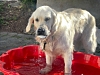 Kira har en badebalje tilgjengelig for en rask nedkjøling, og hun lar seg ikke be to ganger når Oppegård Avis gjerne vil ha demonstrert fasilitetene. Det plaskes med labber og prustes med halve hodet under vann. Spesielt godt liker hun å fiske opp favorittsteinen sin, dersom noen er behjelpelig med å hive den oppi.