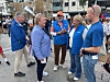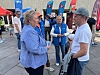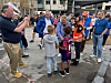 Anført av Bjørn Kløvstad ble Solberg geleidet rundt på Jan Baalsruds plass, for å dele ut politiske budskap, både i trykt og muntlig form.