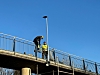 I dag ble det montert et nytt lyssystem på gangbruen over Kongeveien på Sofiemyr.