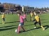- Neste gang så må vi takle hardere, sånn med skuldra, sa "Gullgirlsa" mens to av dem viser fram korrekt takleteknikk.