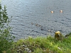 Et raskt googlesøk bekreftet at det var snakk om en familie med kanadagås, og vi telte 3 små og 2 store. Det er store og staselige fugler som kan bli opp til en meter høye, ifølge wikipedia, men som har vært svartelistet fordi den ikke er hjemmehørende i Norge.