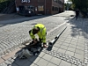Oppegård Avis var på stedet etter vi mottok Larsen sitt svar. Da var arbeidet om å få på plass ny stolpe allerede i gang. Den bestilte lysstolpen var på lager og kunne settes opp umiddelbart.