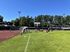 Solen skinner på Sofiemyr stadion mandag og det er ingenting å si på været annet enn at det er varmt.