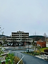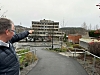Han tar oss med litt opp i høyden, hvor han peker og forklarer ut fra dagens Sentrumsbygget.
