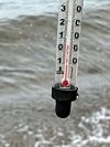 Det er Tom som er dagens måleansvarlig, og termometeret viser at Bunnefjorden byr på deilige fire grader når gjengen skal uti denne søndagen.