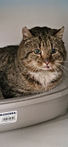 – Han er en eldre herremann. Det eneste sikre som kunne sies, er at han er over åtte år. Han har knekt alle hjørnetennene, så de skal fjernes ved neste runde hos dyrlegen. Han mangler kloa på det ene bakbenet, og som en gammel mann har han litt artrose, så han skal få medisiner for det. Ellers er han FIV-negativ. Så vi regner med at han kan få noen gode år til i pensjonisttilværelse, forteller Lena.