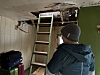 – Nå er hytta i dårlig stand, men vi skal restaurere den og ta den i bruk. Da vi overtok var det en stor maurtue på loftet og det er ganske store fuktskader her. Vi ser at det er lagt flere lag med kledning på innsiden, så det kan virke som den har blitt pussa opp tidligere. I perioder tror jeg også noen var fastboende her, mener Holta.