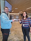 RÅDHUSET: Jarle Andre Ødegaard overrakte Nicoleta Pantiru fra politisk sekretariat det foreløpige resultatet av underskriftskampanjen for Frisklivssentralen.