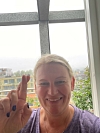 Hun forteller at dagen i dag foreløpig tilbringes på sofaen.