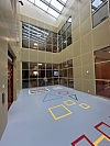 AMFIET: Hele skolens samlingsrom. Nederst finner man en scene, men når den ikke er i bruk kan man bruke det som spisesal i forbindelse med SFO som ligger nederst i trappa.Click to add byline