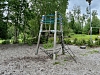 I tillegg til de tomme huskestativene står det et litt slitent klatrestativ, en ødelagt benk og noen slitte balanseleker som Oppegård Avis ikke egentlig skjønner hva er til.