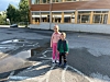 GODE SØSKEN: Medeea på 6 år hadde med seg lillebror David på 3 år til sin første skoledag på Østli skole.Foto: Kristine Bølla Meiland Nedgården